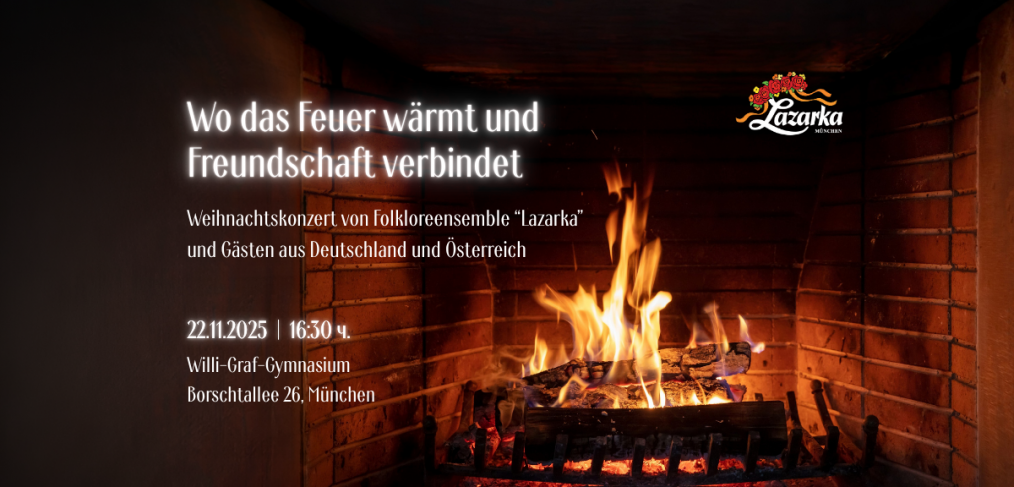 Mit großer Vorfreude lädt das Ensemble „Lazarka“ alle Liebhaber der bulgarischen Folklore zu seinem festlichen Konzert „Wo das Feuer wärmt und Freundschaft verbindet“ ein!